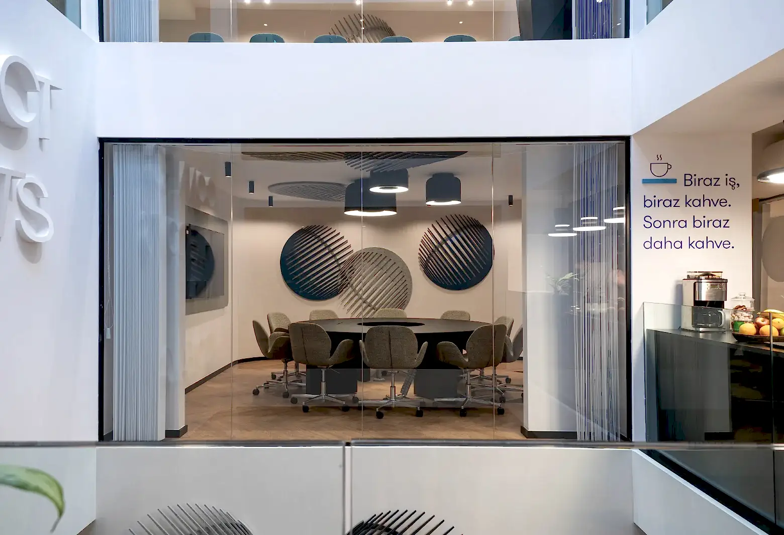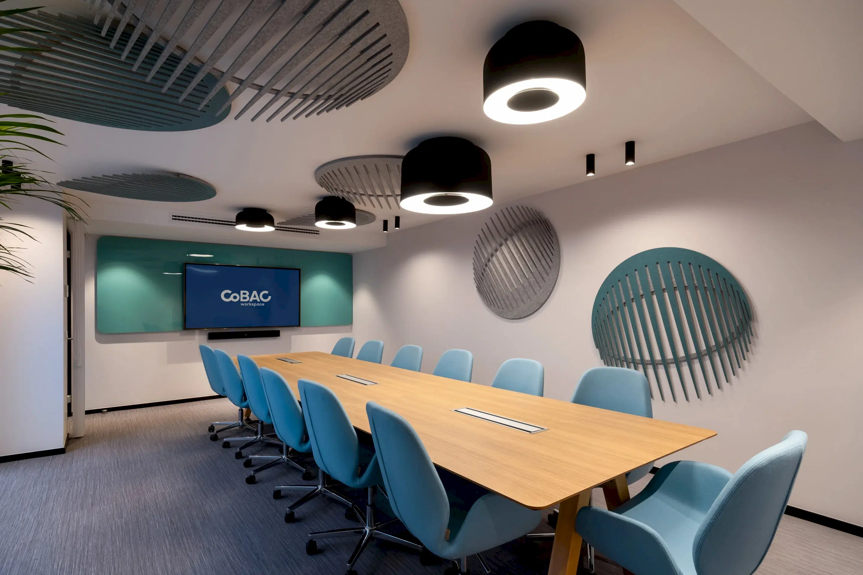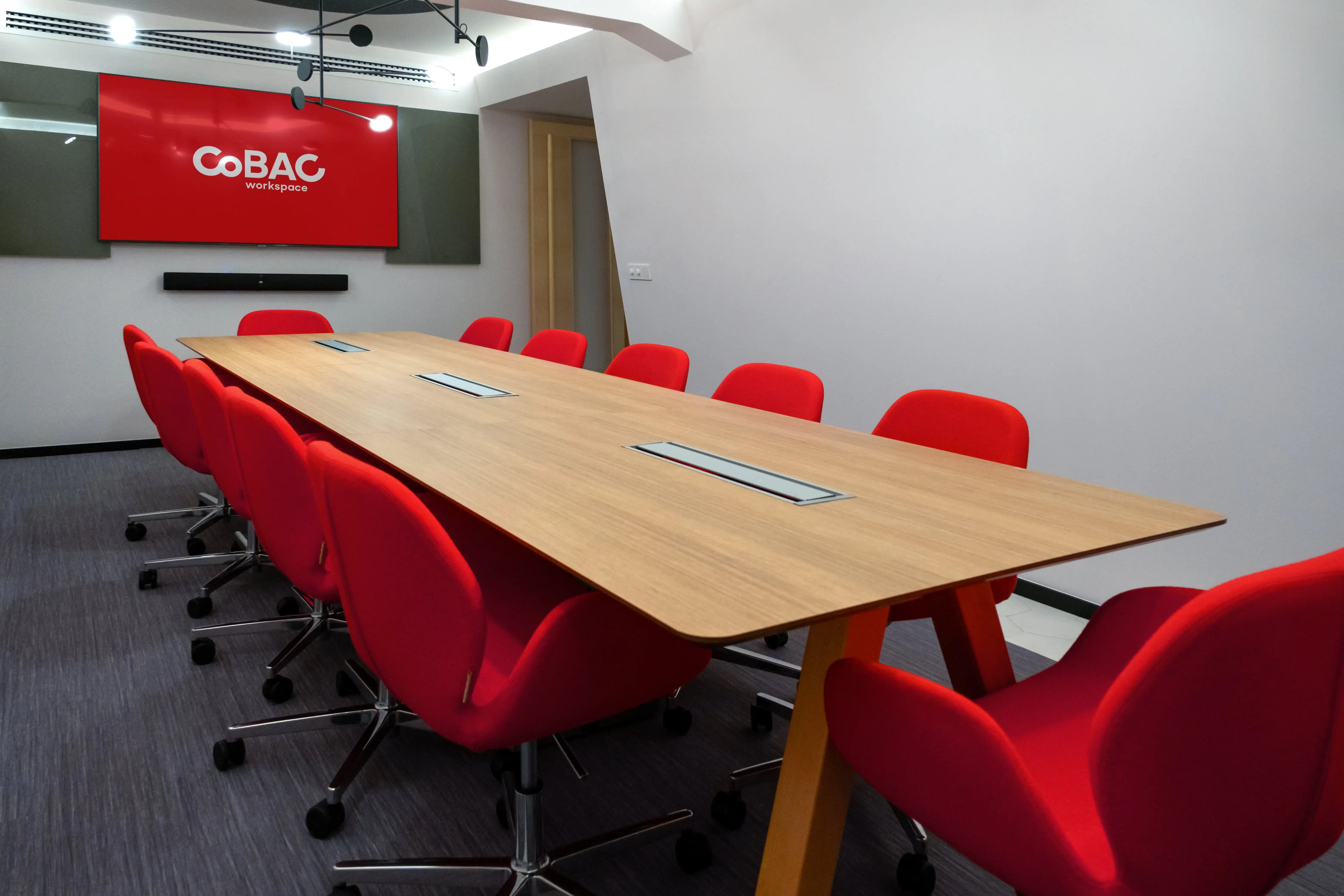 Akıllı tahtadan TV sistemine, ses izolasyon panellerinden konferans düzenine teknik donanımı tam yerinde keyif dolu toplantı odaları.